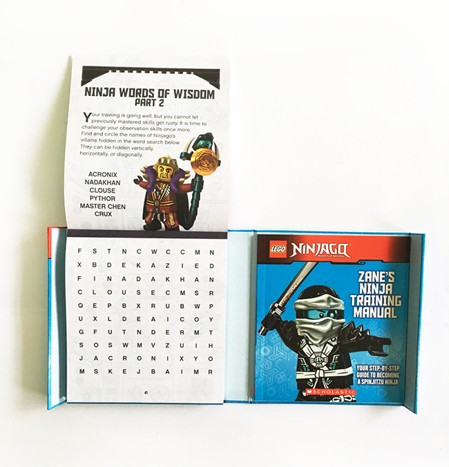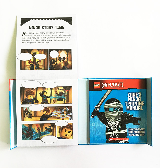 正好搭上《樂高旋風忍者》電影的風潮。這一款新奇的包裝包含一本48頁忍者指南手冊、48頁迷你活動書,還附有一個樂高小玩偶。這對喜歡樂高、喜歡這部電影或者喜歡閱讀的孩子們來說是一樣再好不過的禮物。